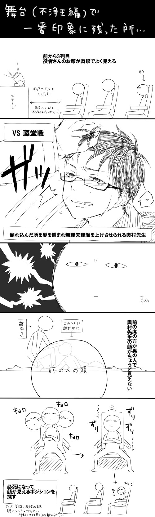 まさか半裸の藤堂さんにのしかかられる奥村先生が拝めるとは…舞台恐ろしや…